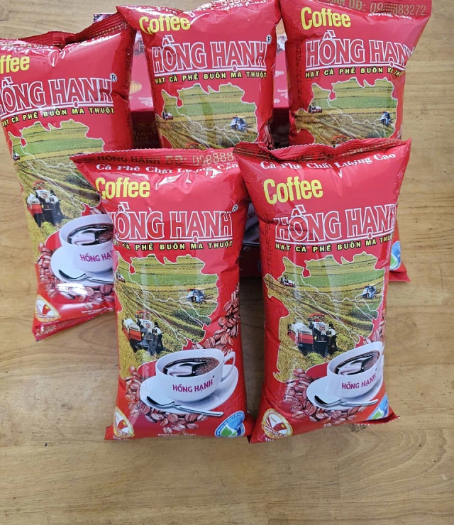 Cà phê Hồng Hạnh được chọn lọc từ những hạt cà phê nguyên chất Buôn Ma Thuột, rang xay theo quy trình hiện đại, giữ trọn hương vị tự nhiên. Sản phẩm mang đến ly cà phê đậm đà, thơm nồng, giúp tỉnh táo và sảng khoái cho ngày mới. Với nhiều dòng sản phẩm như cà phê pha phin, cà phê truyền thống hay cà phê hòa tan, Hồng Hạnh đáp ứng nhu cầu thưởng thức đa dạng của khách hàng. Bao bì đóng gói chắc chắn, tiện lợi, phù hợp cho gia đình, văn phòng hay quán cà phê.